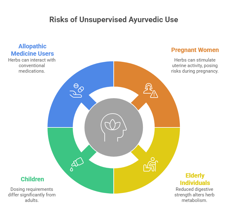 Certain groups face a meaningfully higher risk from unsupervised Ayurvedic use. For these individuals, consultation is not optional — it is essential: