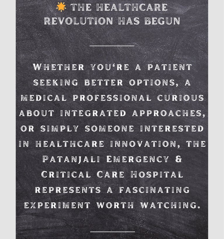 Time will tell whether the Patanjali Emergency & Critical Care Hospital becomes a blueprint for 21st-century healthcare or a fascinating but isolated experiment. What's certain is that it represents a bold bet on integration over isolation, synthesis over separation.
